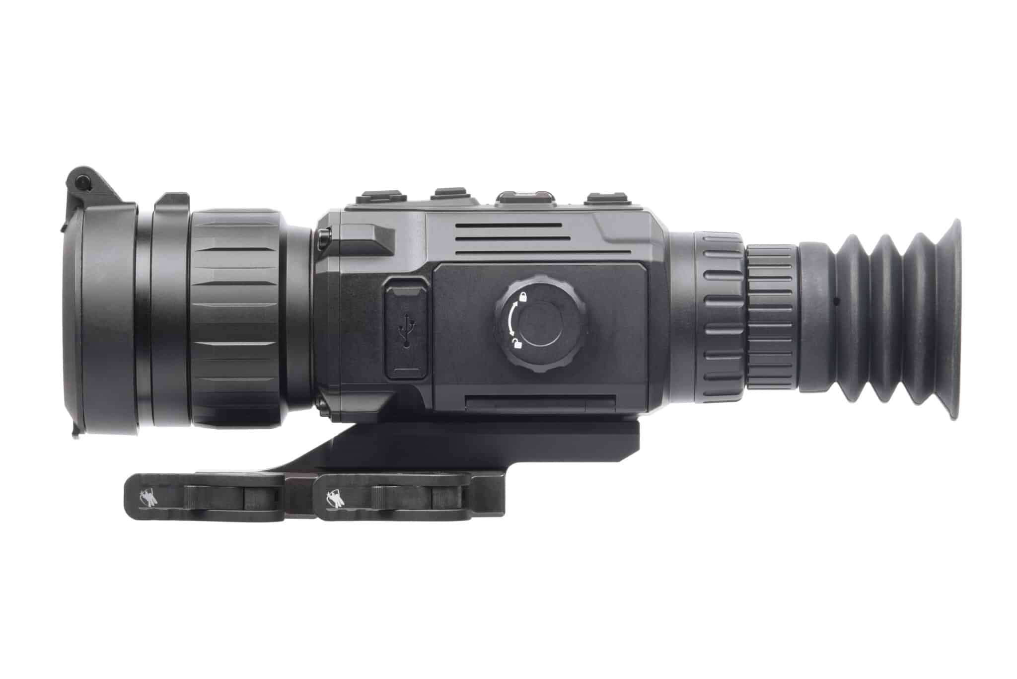 The Clarion provides a solution, thanks to the incorporation of a dual lens optical system. This system has the ability to mechanically alternate between two different internal lens sizes, therefore altering the base magnification and field of view without diminishing the image resolution.This flexibility brings versatility to hunters to optimize their optic depending on the geography and animals they are hunting. AGM also paired this new design with the most sensitive thermal sensor temperature rating in its class: a mind-blowing sub-20 milikelvin.