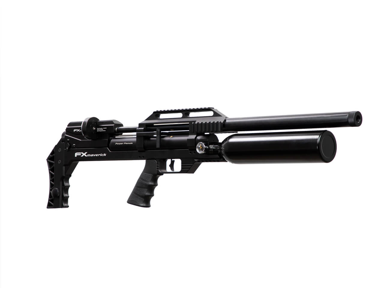 This airgun employs the world class Smooth Twist X (STX) Interchangeable Barrel & Liner System, as do all modern FX Airguns. Every Maverick ships with the Superior STX Standard liners, which are ideal for shooting pellets, hybrid slugs, and lighter weight slugs, although additional liners are available for different projectiles. It has a more tactical body to accommodate aftermarket components to be added for even more customization. All Mavericks have 20 MOA built into the picatinny scope rail, multiple picatinny accessory rails, standard AR grips, and feature the newly designed rear FX buttpad.
