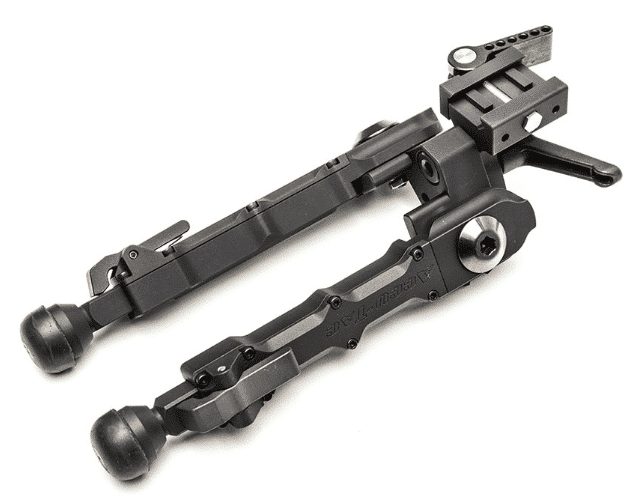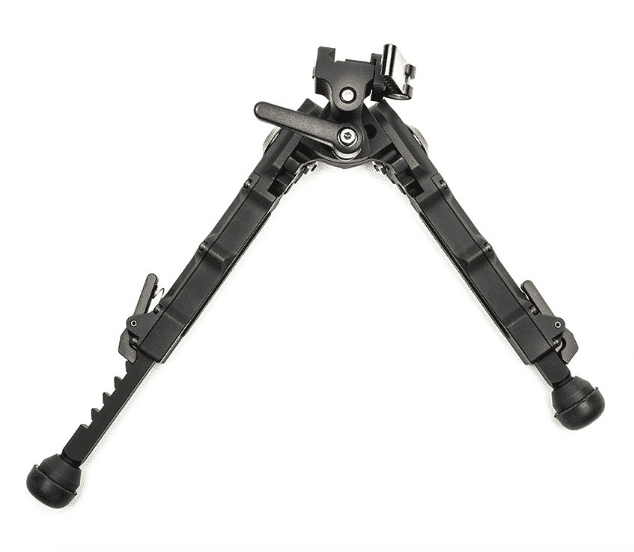 The quick detach attaches to a 1913 Picatinny rail and mounts in seconds without the need to use extra tools for tightening. Their leg design allows the shooter to quickly adjust to 5 different positions with the advantage of being able to position each leg differently. The updated G2 model now offers leg extensions with a total of 5 notches for additional height. The BR-4 G2 has the ability to cant which can be locked with its new throw lever.