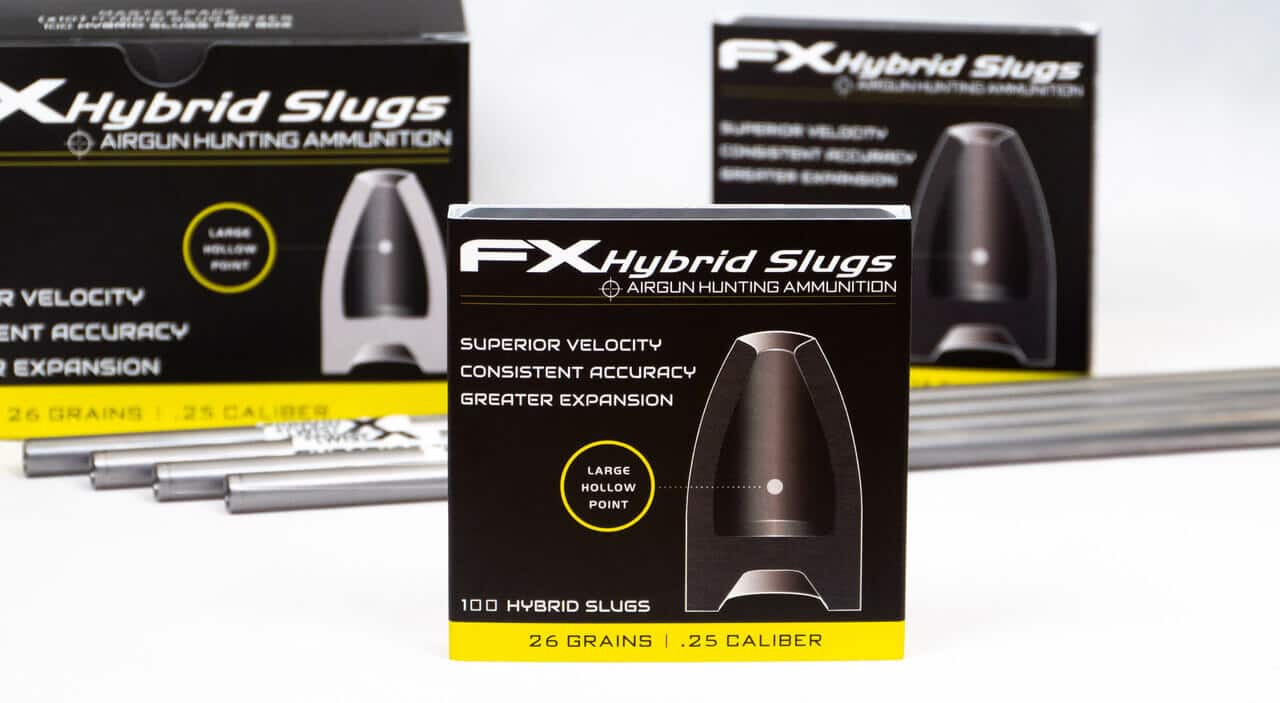 The Hybrid Slug has been a fundamental leap forward in airgun projectile technology. Combining the high ballistic coefficients of slugs, accuracy of pellets, and a light weight provided by the deep recessed hollow point provided by the Hybrid’s patented design. FX proudly offers the next chapter for the Hybrid, the .25 Caliber FX Hybrid Slug. The .22 Caliber Hybrid that was released at the end of 2019 has been a resounding success with FX Airgun owners and those shooting the Hybrid from other manufacturer’s rifles. The effect of the light weight of the design only shines brighter with larger calibers.