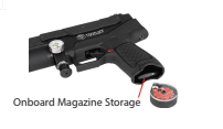 - Onboard magazine storage in grip