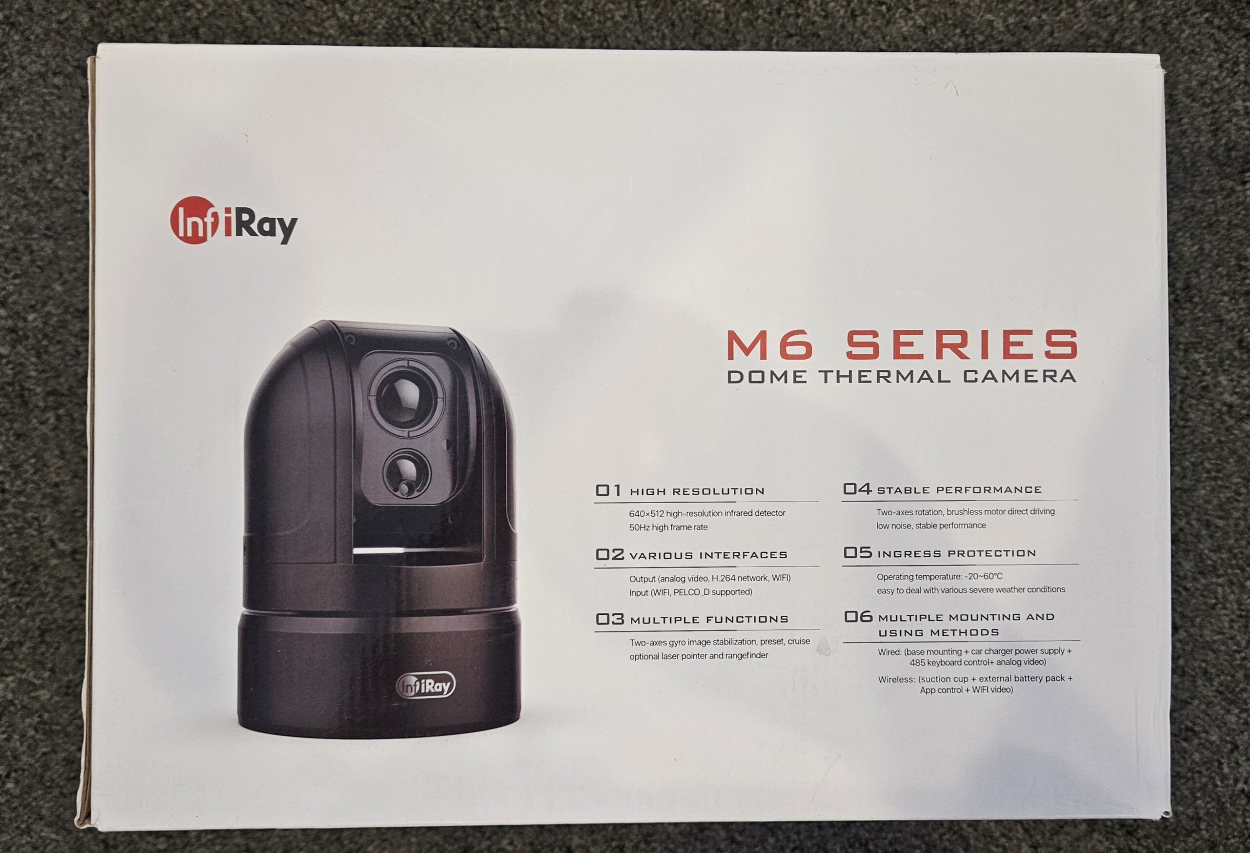 The InfiRay Outdoor M6T Thermal Camera System is built to increase scanning capabilities while onboard a vehicle and is manufactured with ruggedness to maintain exceptional performance over years of use and exposure to the elements. InfiRay's goal is to create the highest quality PTZ (Pan-Tilt-Zoom) camera systems available for night use. The M6 features video recording, gyro stabilization, and mobile app connectivity with wireless streaming. This M6T also features an integrated laser pointer and laser rangefinder for increased situational awareness. The M6 kit has everything you need to add thermal to any vehicle, including power and signal wiring harnesses and an easy-to-use wired thumbstick controller. In a matter of minutes, you can upgrade any vehicle with powerful thermal imaging technology.
