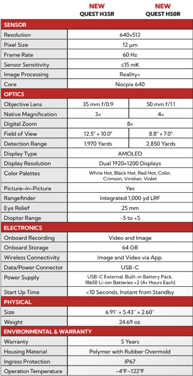 5×5WARRANTYSensor Resolution640x51212μmDual AMOLED DisplayLightweight DesignFast Refresh Rate60HzIntegrated LRFRemovable BatteryWater ResistanceAll new for 2025, the QUEST Series brings the power of a 640 thermal core and integrated laser rangefinder to the comfortable and familiar feel of traditional binoculars.