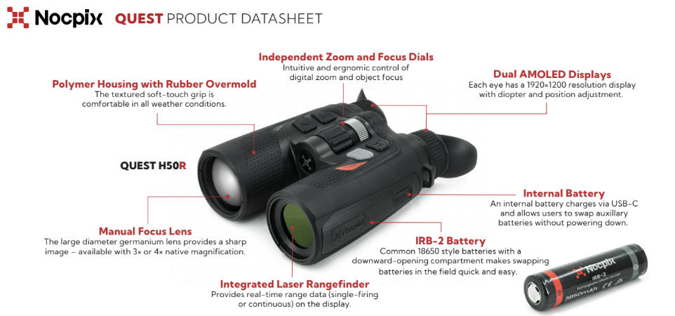 Nocpix - Quest H50R - Rangefinding Thermal Binoculars