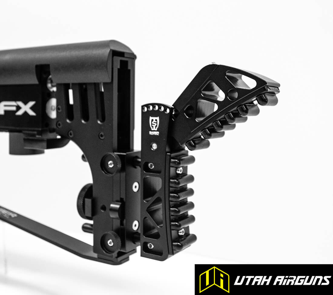 The Saber Tactical Adjustable Buttstock is a gamechanger if you own the FX Impact. This will be one of your favorite accessories you purchase and very easy to install. This product allows for a wide variety of adjustment to make your Impact more comfortable to shoot. Both macro and micro adjustment options will give you the ability to tailor your Impact to be easier to shoot from the bench, offhand, speed challenges, and a whole lot of other uses.