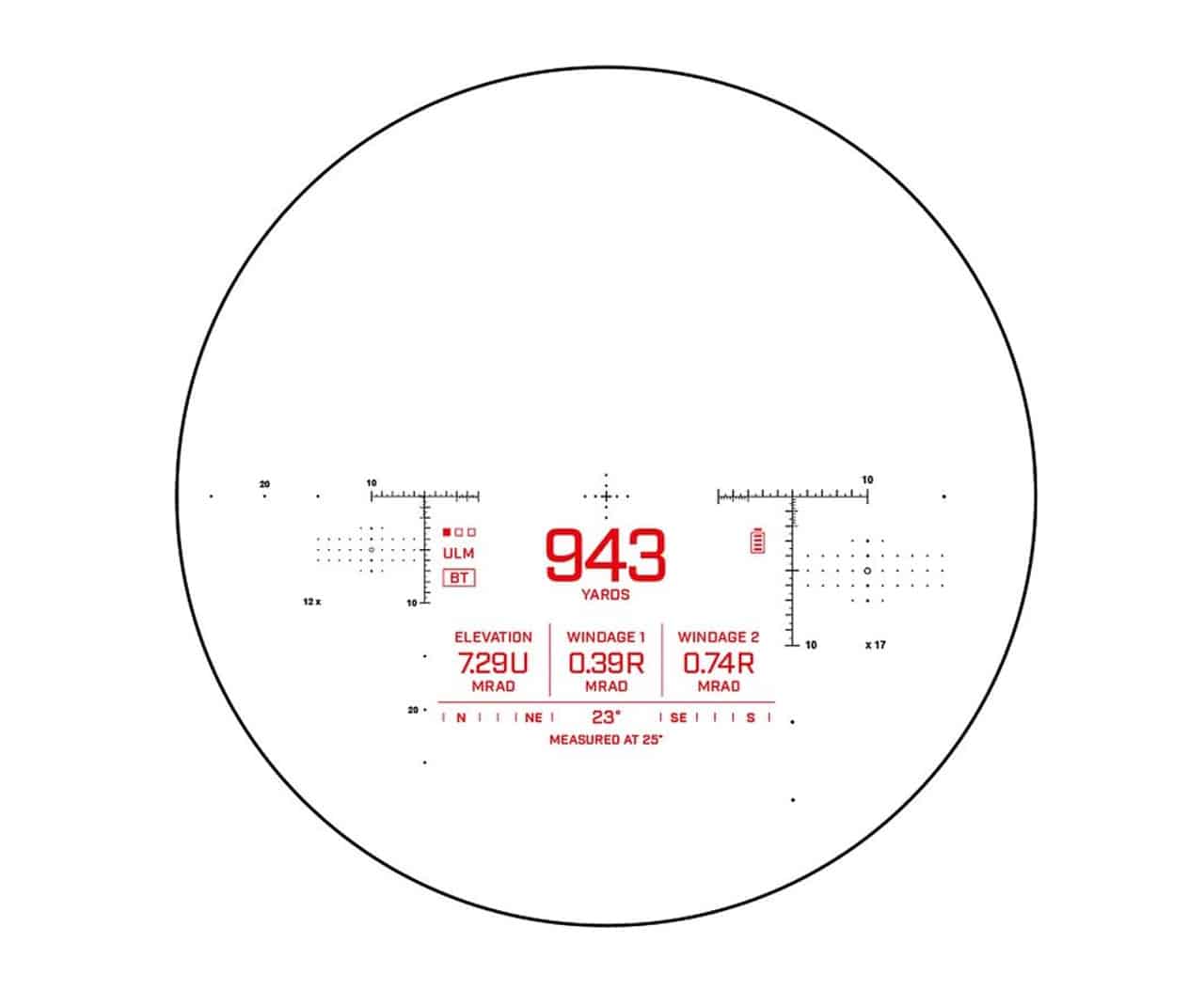 The Vectronix Vector X Rangefinding Binocular is the most advanced on the market. To start, Applied Ballistics Elite on-board comes standard with each binocular. Never find yourself without power thanks to the low-power consumption design of the rangefinder, as well as the ability to be powered by 18650 rechargeable batteries. Three HUD screens provide information on important shooting information such as elevation and windage and also show your wind presets and gun profile.